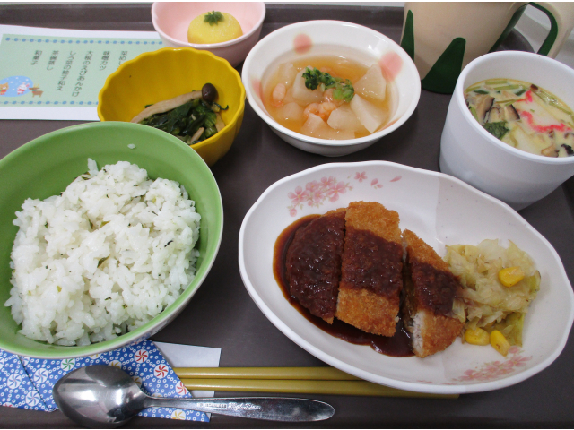 12月11日(木)に誕生会を開催しました。今日の誕生食は、皆さん大好きな味噌カツでした。