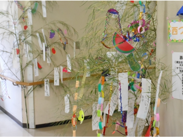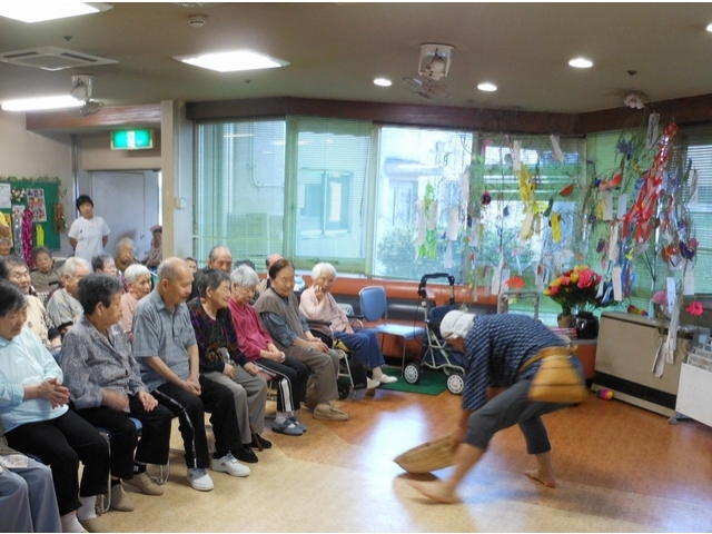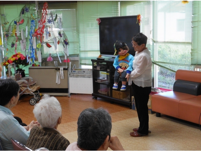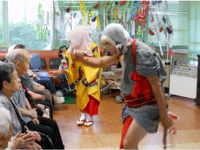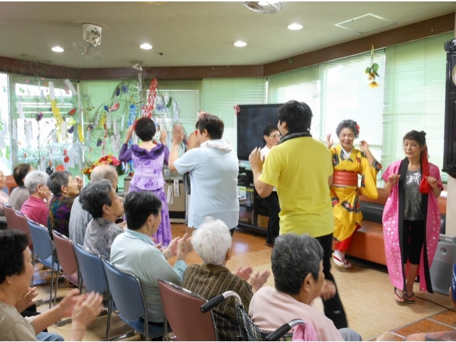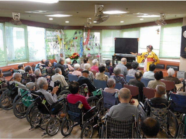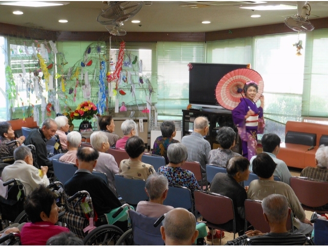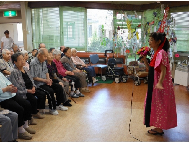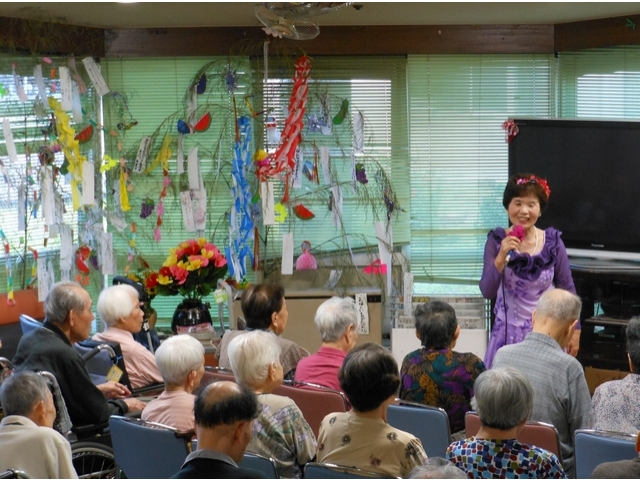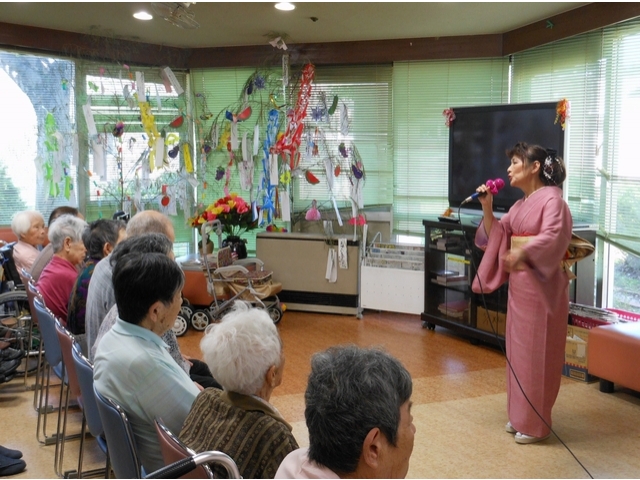 今日は「七夕まつり」。ボランティア団体である“ひまわり歌謡会”の皆様による歌や芸、踊りなどを楽しみました。