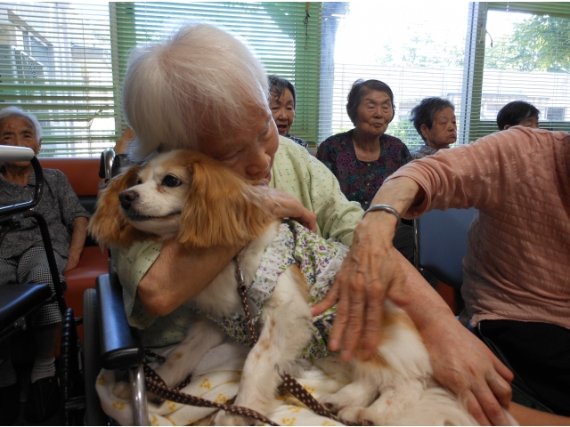 犬好きの方も多く、愛らしい表情やしぐさに、皆さんも満面の笑みで可愛がっておられました。
