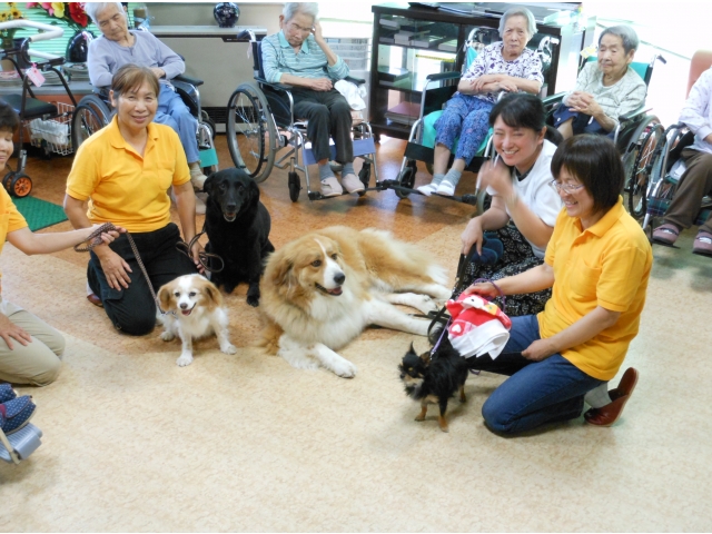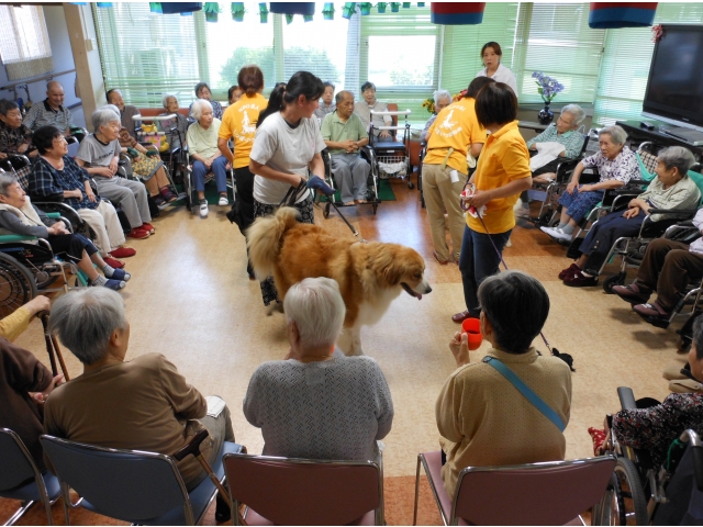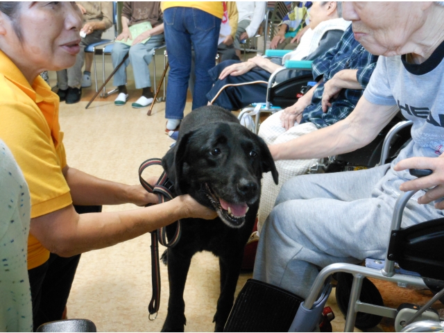 小さなチワワから大型犬まで、4種類のワンちゃんたちが利用者の皆さんと楽しいふれあいのひと時を過ごしてくれました。