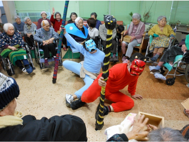 「鬼は~そと~!」「福は~うち~」皆さんの掛け声も息ぴったりでした。