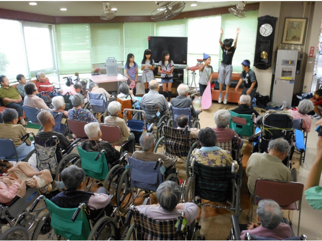 熱の入った「桃太郎」とオリジナルの劇、「ふるさと」の合唱に、利用者の皆さんも口ずさみながら楽しんでおられました。