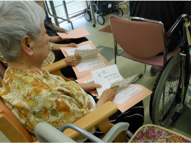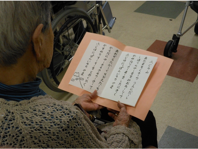 選んだ歌は、「ふじの山」、「夏の思い出」など。スタッフが歌詞を準備したものの、さすがは皆さん!歌詞を見なくても自然と歌詞が口をついて出てきます。