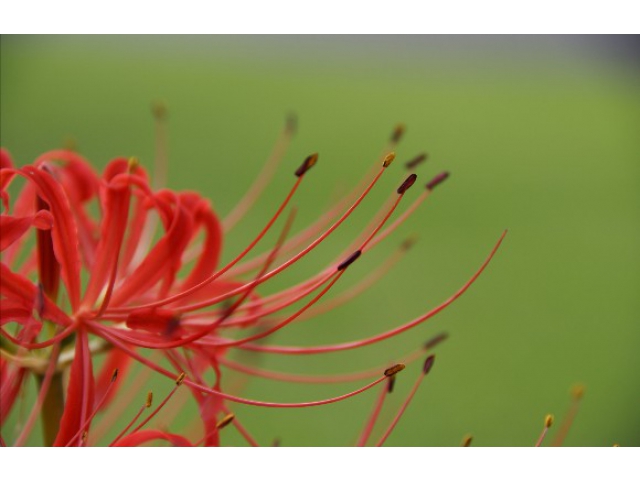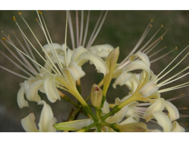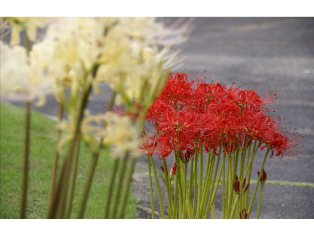 日に日に秋が深まってきましたね。 苑の玄関先では、赤とクリーム色の彼岸花がお越しになる皆さんの目を楽しませています。 赤以外の彼岸花はちょっと珍しいですね。