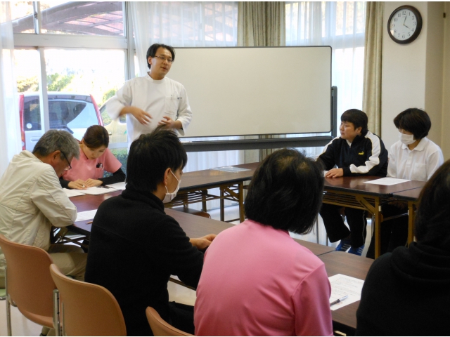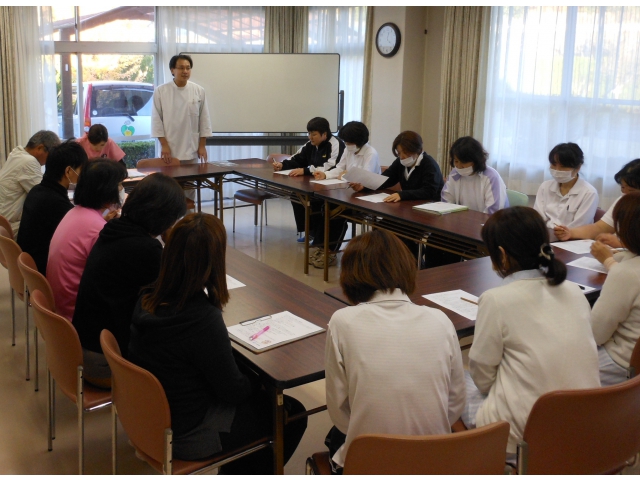 今回の職場研修は、協力歯科医院の歯科医師を講師として招き、口腔ケアについて学びました。