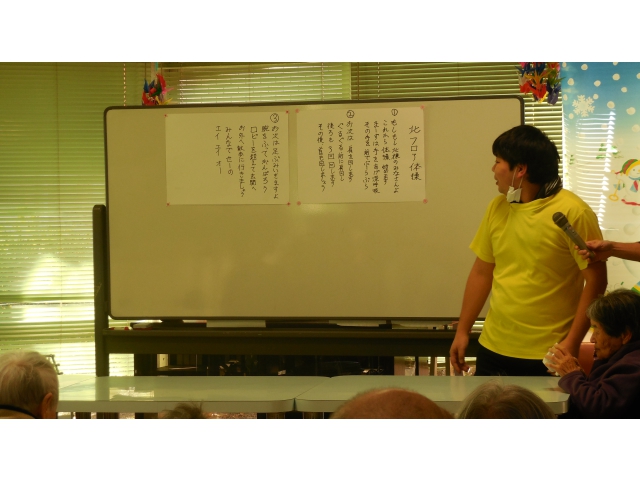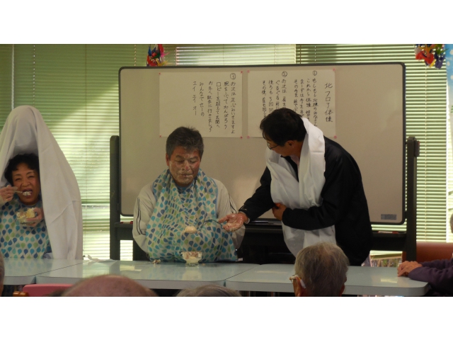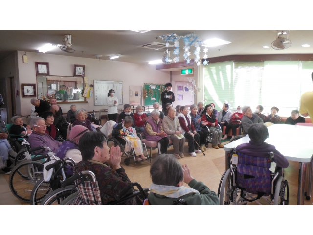 去る12月10日に瀬戸苑で利用者忘年会が行われました!職員からの出し物にみなさん大満足な様子!特に二人羽織はくじで職員が当てられ、一喜一憂してました!来年も新たな気持で新年を迎えられそうです。