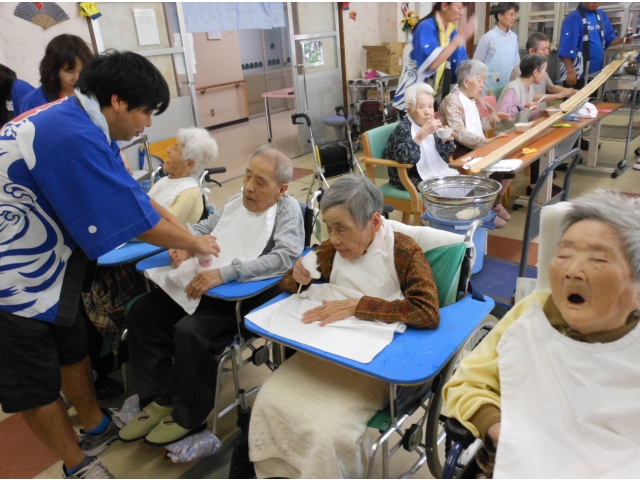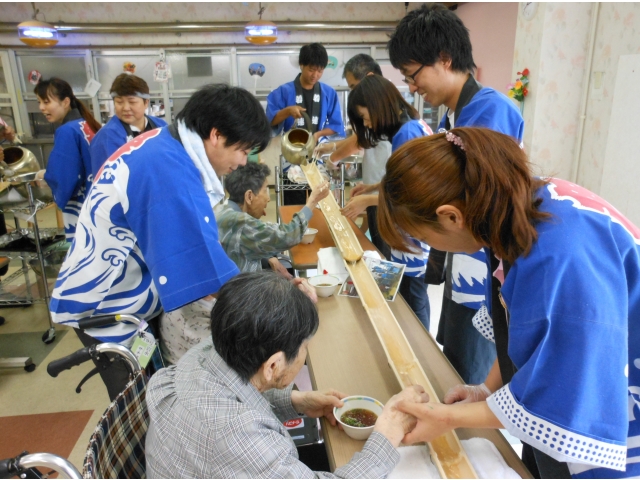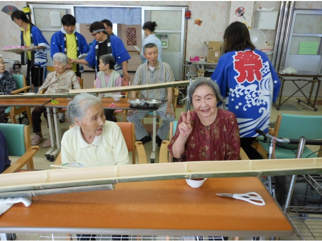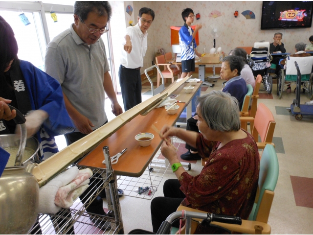 風鈴が鳴り、祭りの映像を見ながら・・・流しそうめん、アイスクリーム、わたがしを食べました!みなさんおいしいとコメント頂きました!