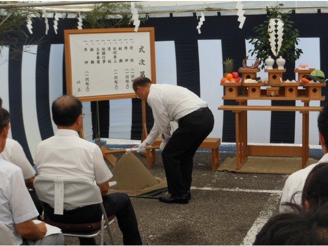 本日は暑い中多くの御来賓の方が参加されましたことにお礼を申し上げます。今日は瀬戸苑の改築にかかる起工式が行われました!今日は最高気温が39度になるかならないか?というくらいの猛暑の中で起工式は粛々と行われました。無事に工事が終わることを職員全員で祈っています。