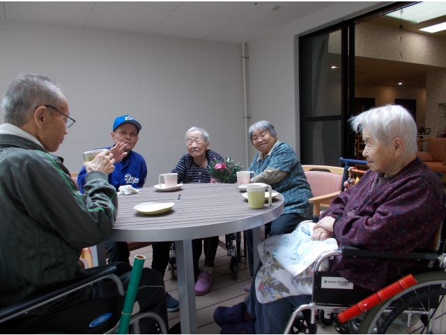 - テラスでゆったりコーヒータイム