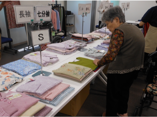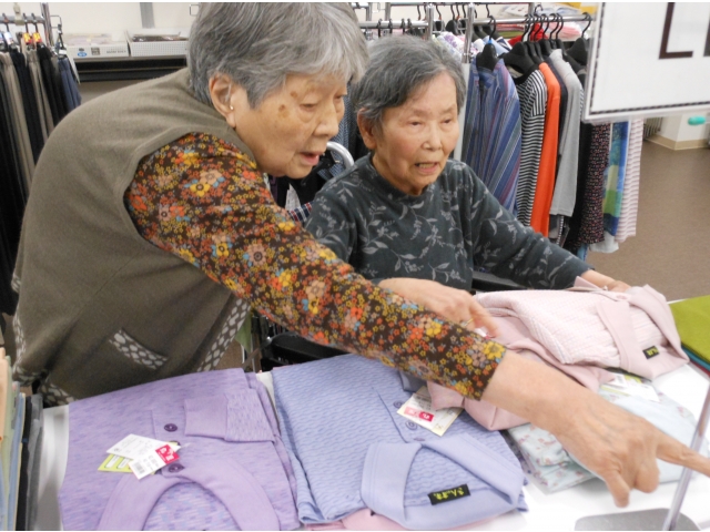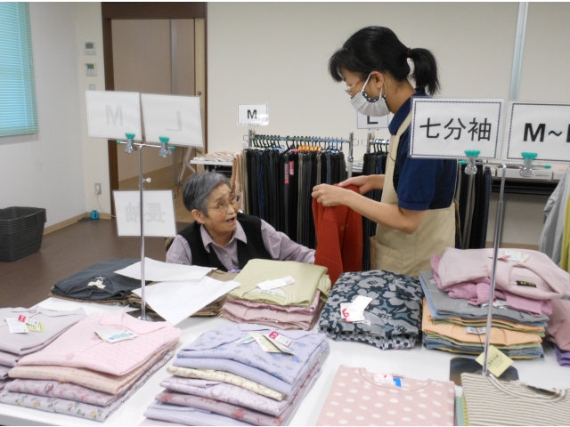 夏物の衣類販売を行いました。 来場の入居者様は「この色は飽きそう」「こういうものは洗うと縮む」「七分袖より長袖がいいかな」など スタイルをとるか 機能性をとるか 種類も多く迷っていました。 選ぶのに多少時間がかかってしまいましたが 良い気分転換になったかと思います。