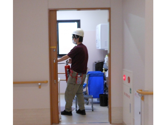 この日は洗濯乾燥機室から火災が発生したという想定で訓練を実施しました。
