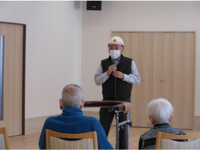 すみれの乾燥室からの出火なので煙を避ける為、北側の通路を通り抜けました。実際は暗く足元が見にくい中、また緊迫した中での避難になるので入居者様と職員、足元に注意しながら地域交流スペースまでの経路を確認しました。