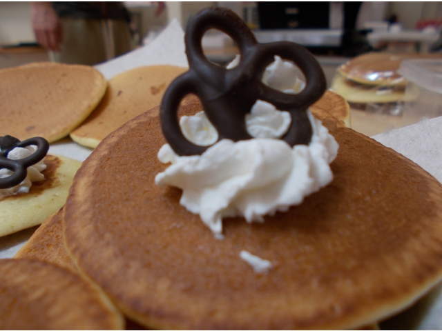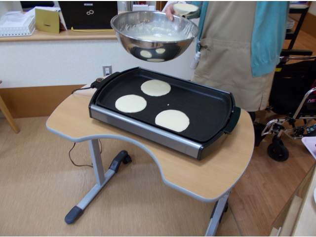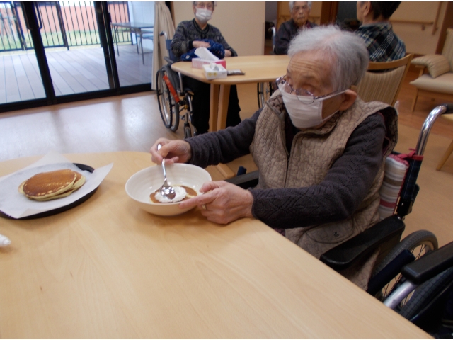 パンケーキの甘い匂いが廊下まで漂っていました。