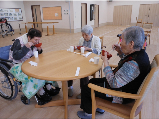 入居者様からは、甘くておいしい!!おいしいおもち食べることができてうれしい!!との声があがり、おかわりをリクエストするなど大変好評でした。