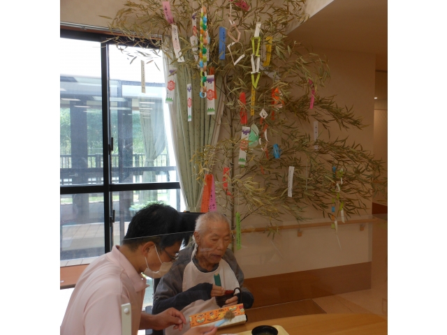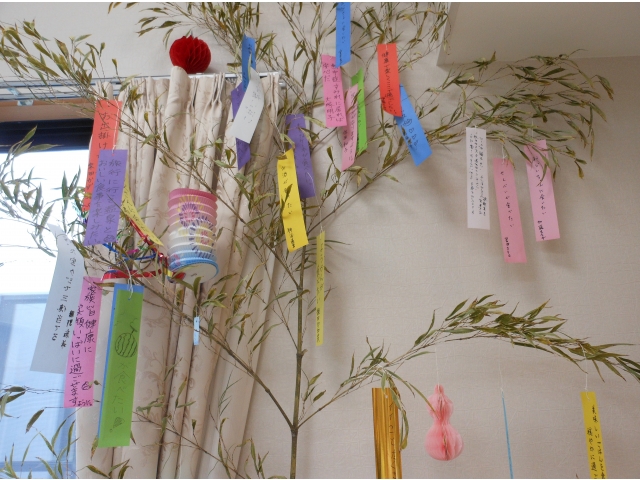 短冊には、入居者様の思いが込められています。 願い事が叶いますように