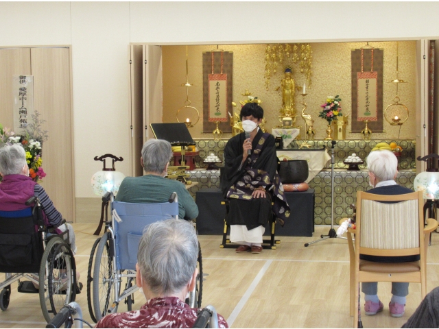 ご住職には、どんな時でも気付かないところで支えられて生きている。ヒトは、よく物事がうまくいったり、褒められた時「お陰様」と挨拶するが、苦しい時や辛い時こそ日頃から支えてくださっている方々に「お陰様」と感謝の意を示すことが大切で、人をつなげる言葉、挨拶、本来の意味をお話しして頂きました。