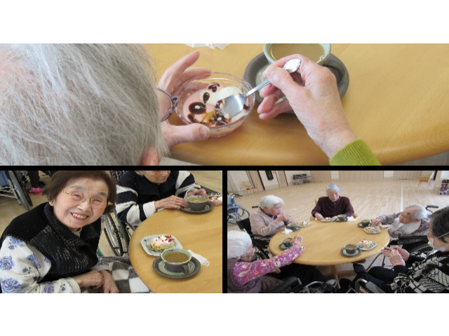 節分会後には喫茶でケーキ、プリンを提供させて頂きました。