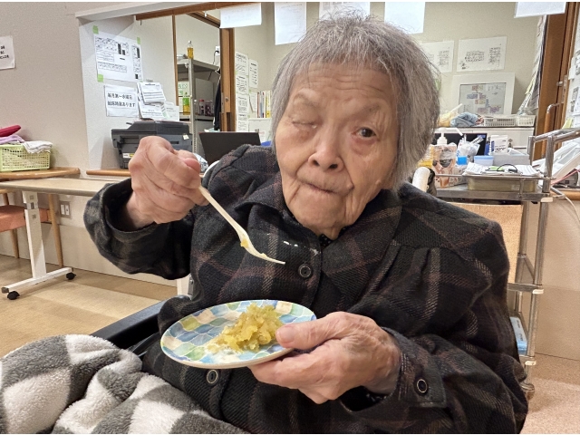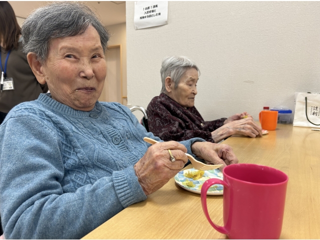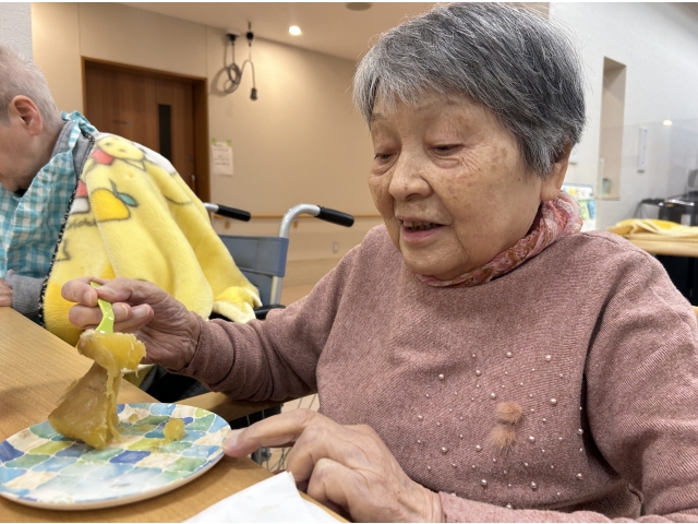 ねっとりなめらか 茨城県産「紅天使」 入居者様は、大好きなスイーツを召し上がり お腹も心も「ほくほく」気分になりました。