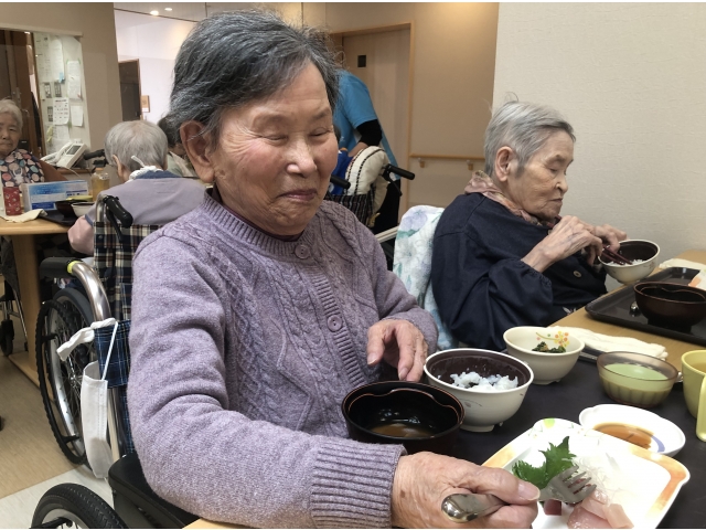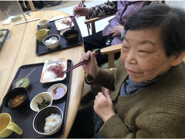 1月に実施された入居者懇談会で、「お刺身が食べたい!」との声がいくつか聞かれましたので、提供することになりました(*^-^*)