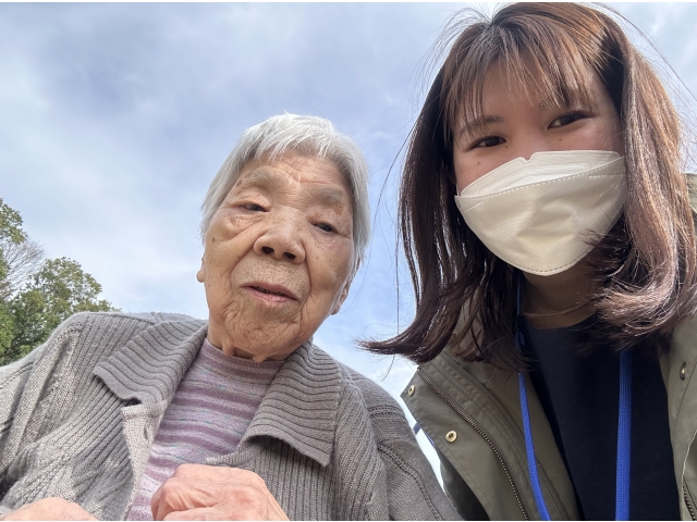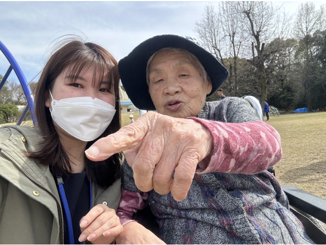 森林公園まで向かう途中、車窓を見ている入居者様は