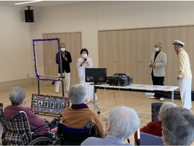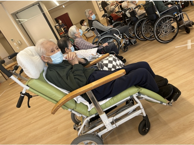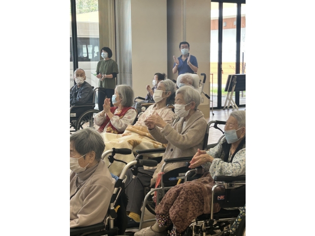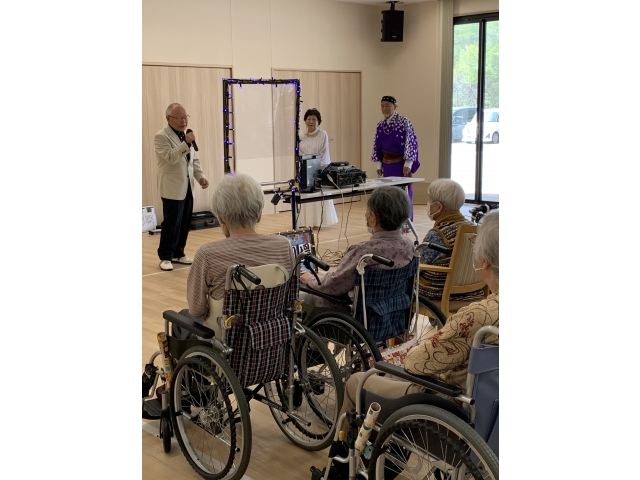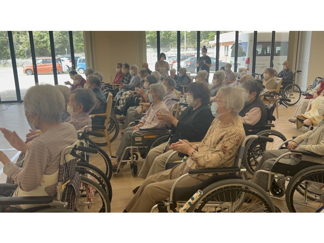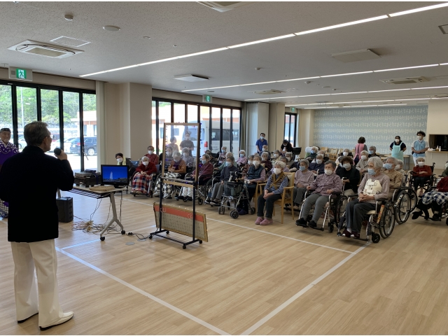 4月17日、たんぽぽの会様にお越し頂き、歌唱会を開催しました。 「ちゃんちきおけさ」「花嫁峠」等々入居者様にとって懐メロのオンパレード‼ 参加者の皆様は、曲が流れると自然と歌詞を思い出し、ノリノリ手拍子でリズムをとっていました。 あっという間の1時間。懐かしく、楽しいひと時を過ごしました。 たんぽぽの会様ありがとうございました。