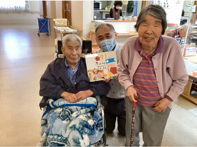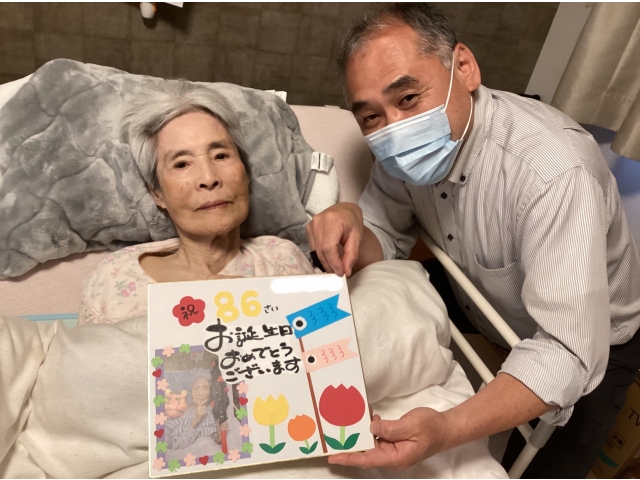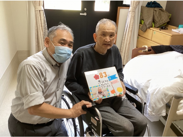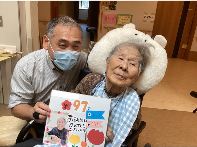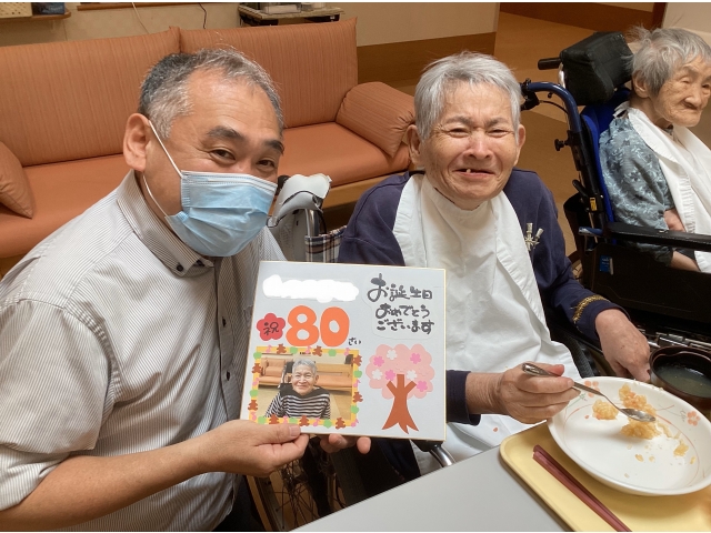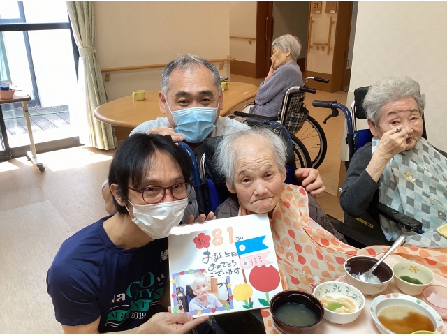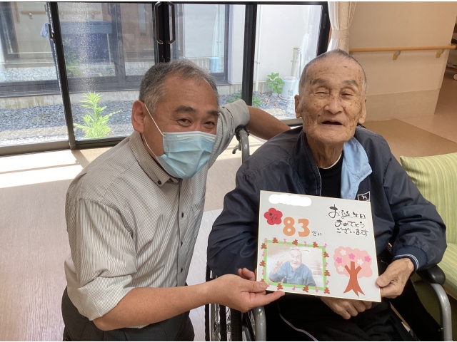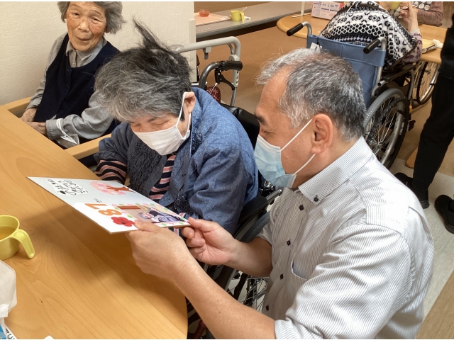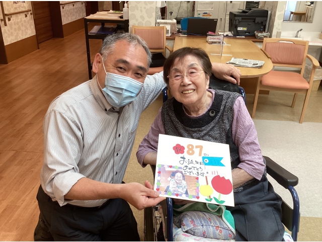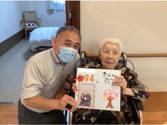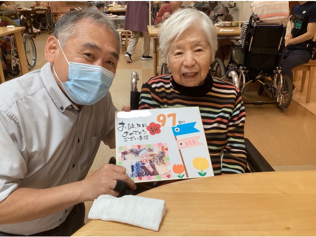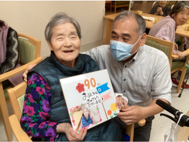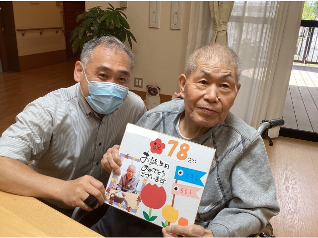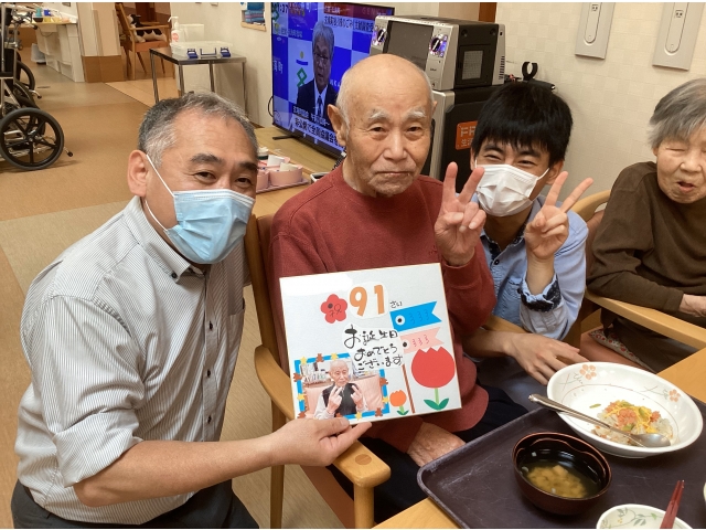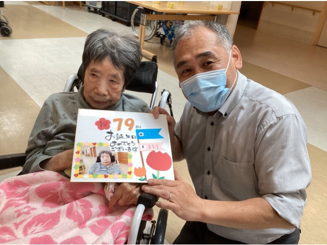 お誕生日プレゼント🎁は、栄養士さんが中心となり職員みんなで気持ちを込めて写真付きの色紙を手作りしました♪