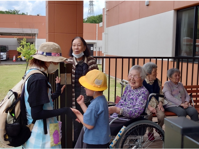 今年5月から当苑の隣にある「のぞみ学園」の園児たちが毎週遊びに来てくれるようになりました(*^-^*)