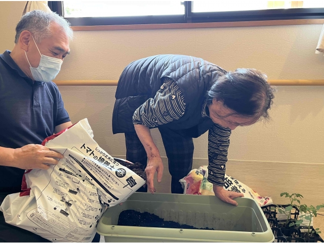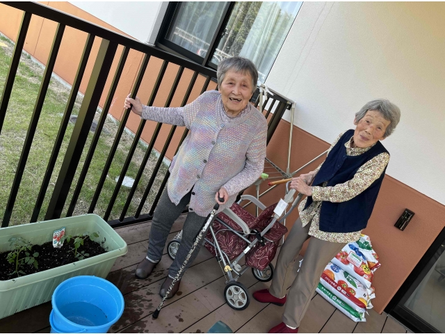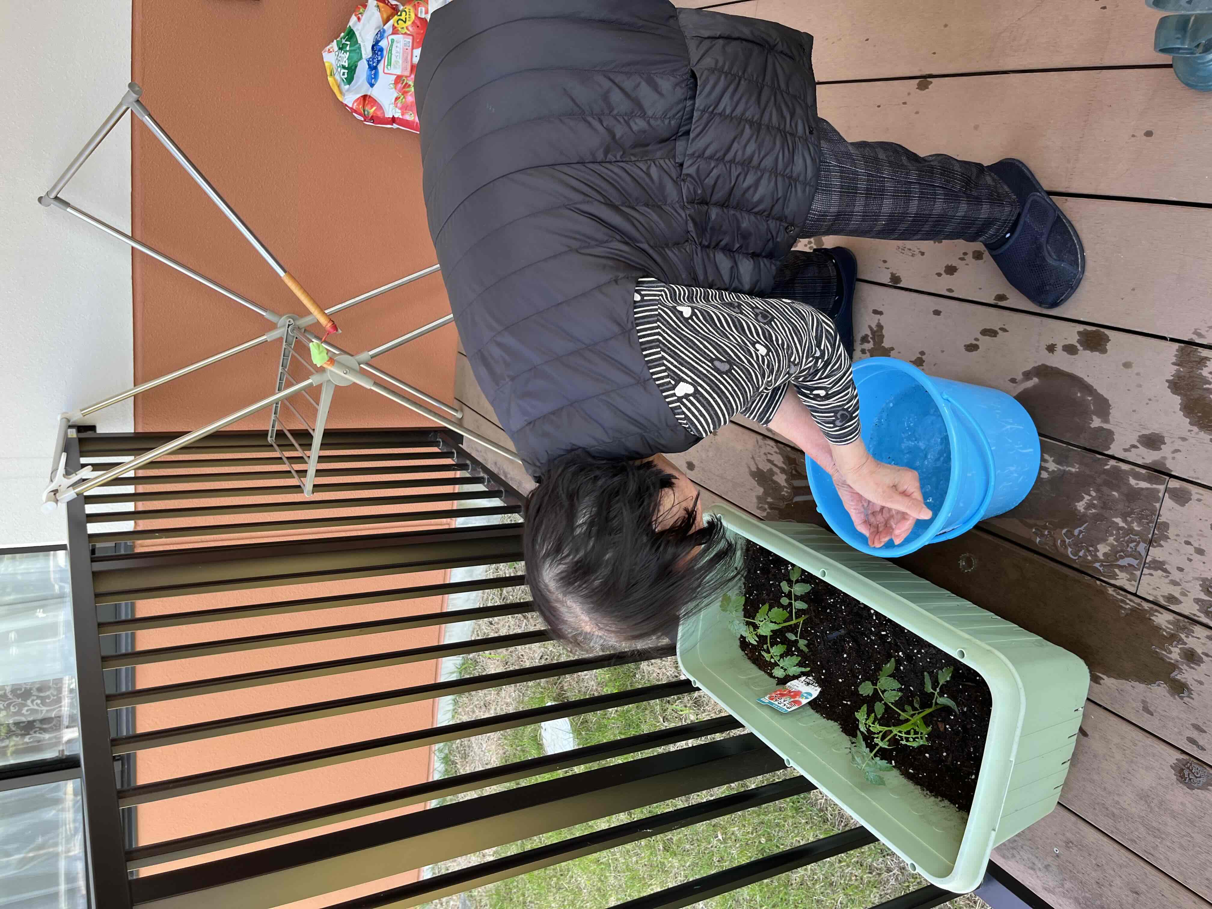 6月14日に、すみれフロアでミニトマトの苗を植えました(*^-^*) 瀬戸苑には各フロア・ユニットにバルコニーがあり、日光浴の場所になったり、家庭菜園の場所になったりと、様々な楽しみ方で利用しています♪ 土いじりをはじめると、昔を思い出されたご様子で、現・家庭菜園者のアドバイスそっちのけで黙々と苗植えを楽しまれていました😂 実がなるのは8月ごろ??それまで毎日お世話で大忙しになりそうです😎