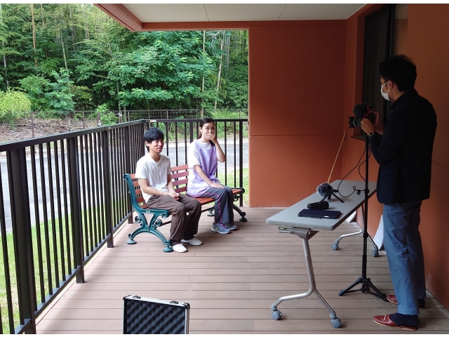 今回、撮影に協力してくれたのは、採用2年目の介護職員、今井健人さんと加藤明日美さんの2名です。撮影とインタビューを前に少し緊張気味のお二人😅