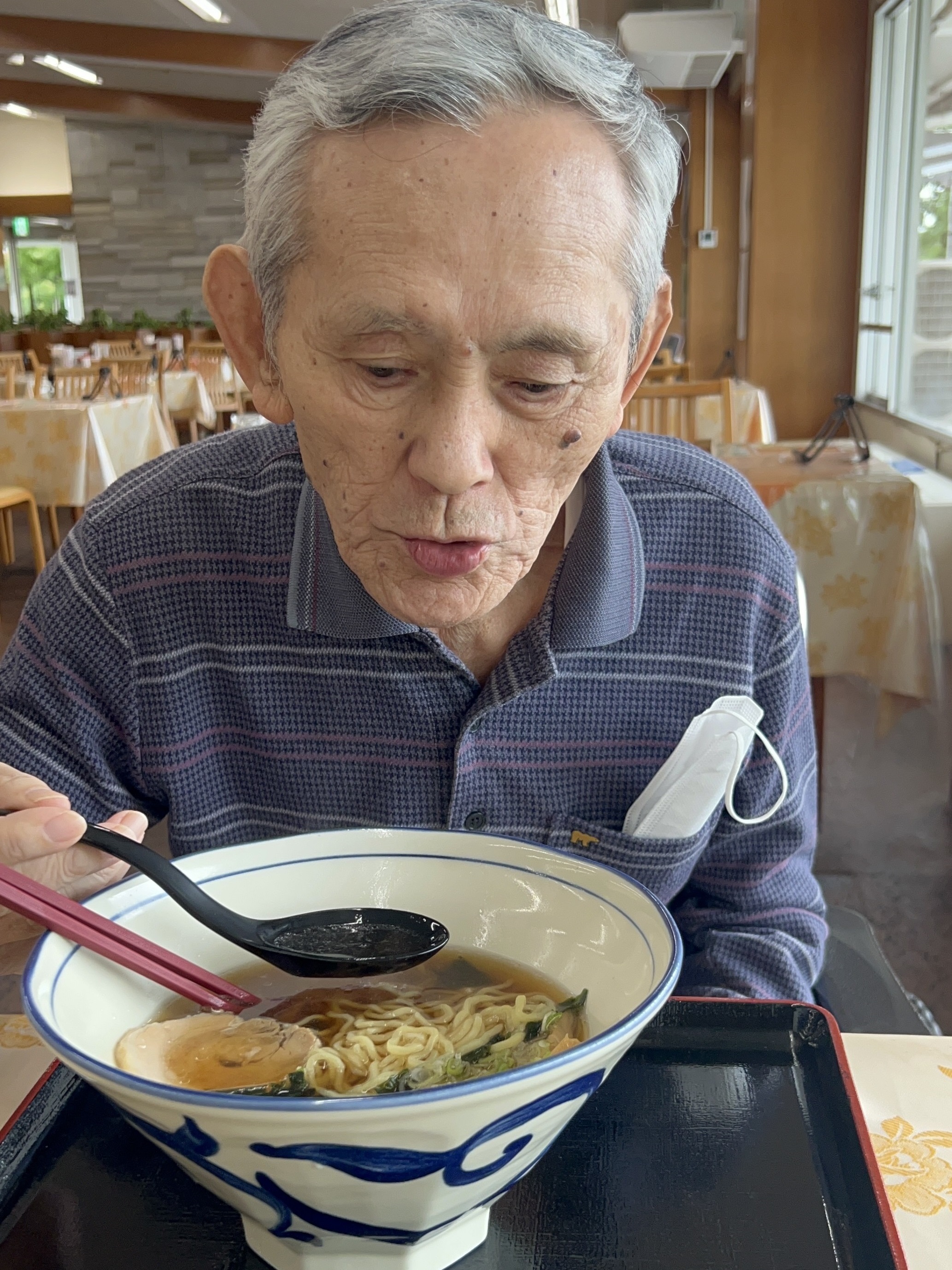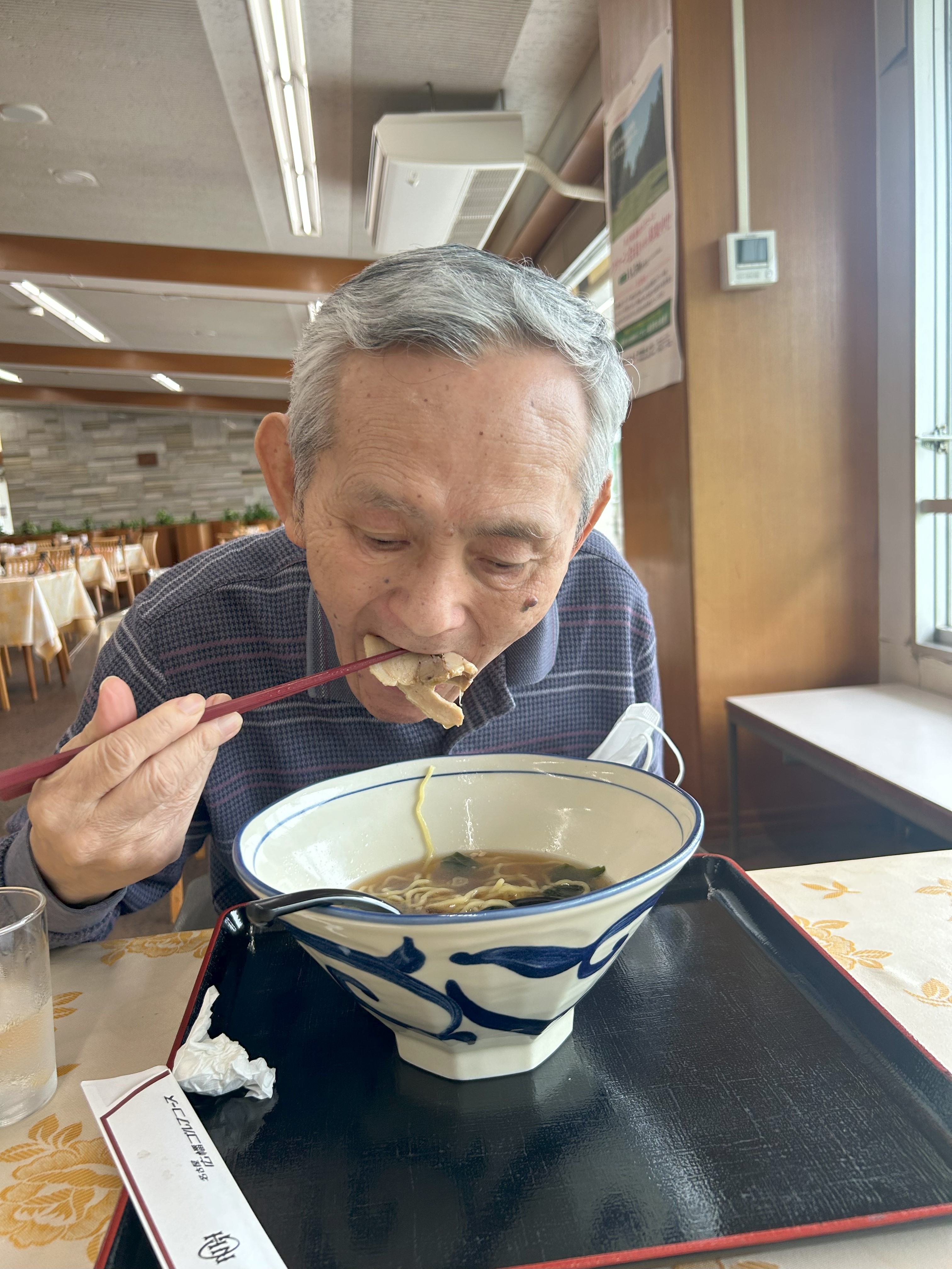 輪島市からの避難者・山元さんは念願のラーメン🍜に「半年ぶりだ。こんな美味しいラーメン食べたの😍」とチャーシューもペロリ😋