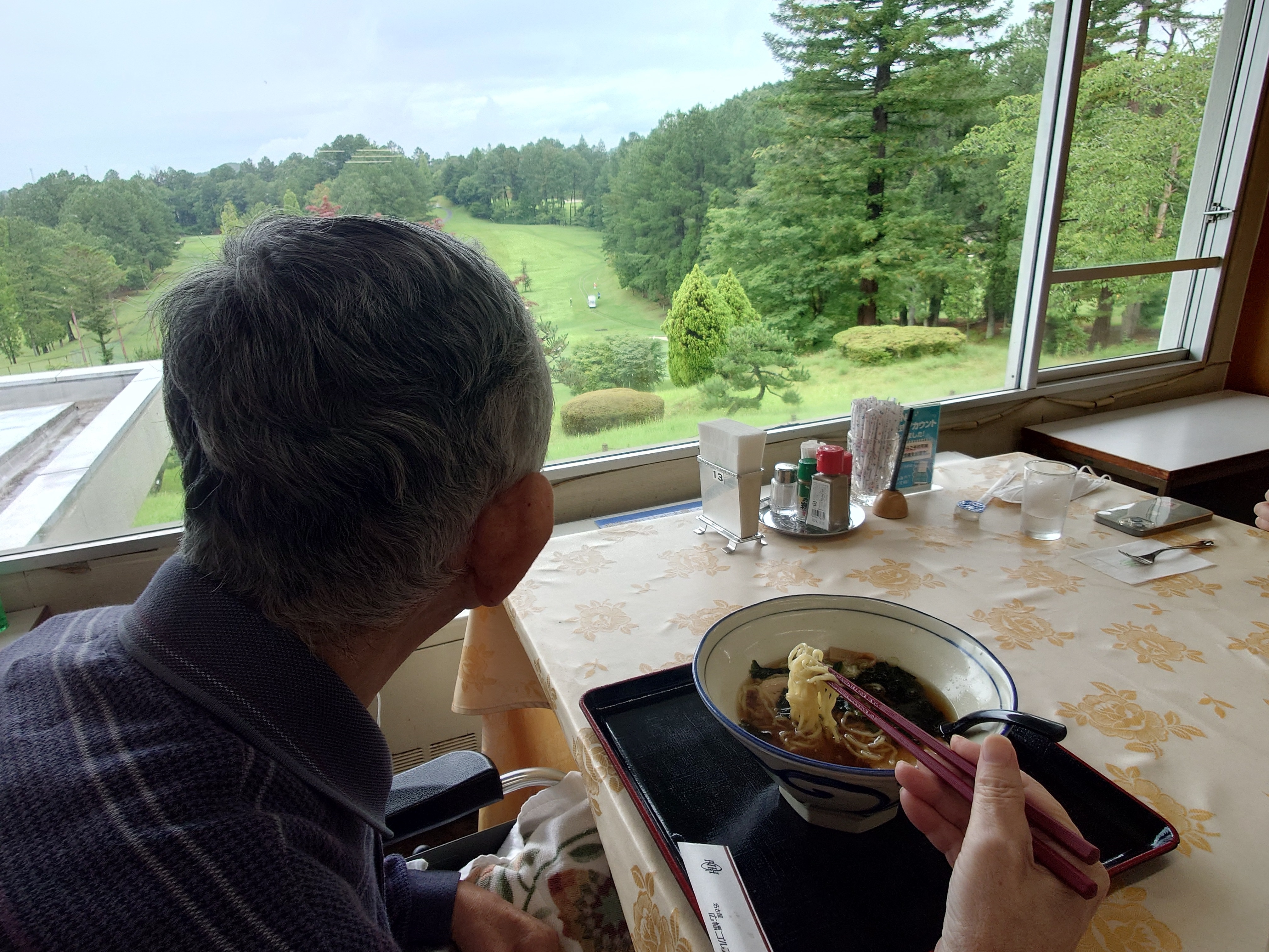 グリーンを眺めながらのラーメンは最高のようです。