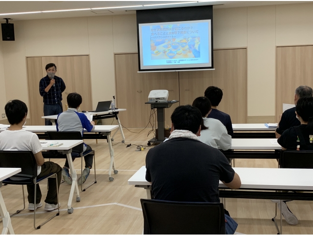 7月10日(水)村瀬文康先生(株式会社ジェネラス 訪問看護ステーションほたるみどり 言語聴覚士)にお越しいただき、『なぜ誤嚥性肺炎が起きるのか?』をテーマに職場研修をお願いしました。
