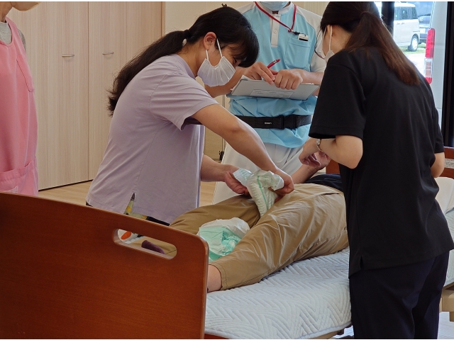 現在股関節を痛めている職員は「オムツ交換時に身体をどう動かすと入居者様の負担になるか、実体験してみて良く理解できました」😅