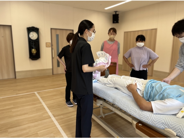 7月17日(水)、株式会社リブドゥコーポレーションの中島先生にお越しいただき、『心地よい快適なオムツの当て方』をテーマに職場研修をお願いしました。