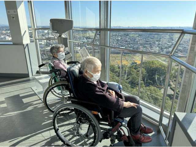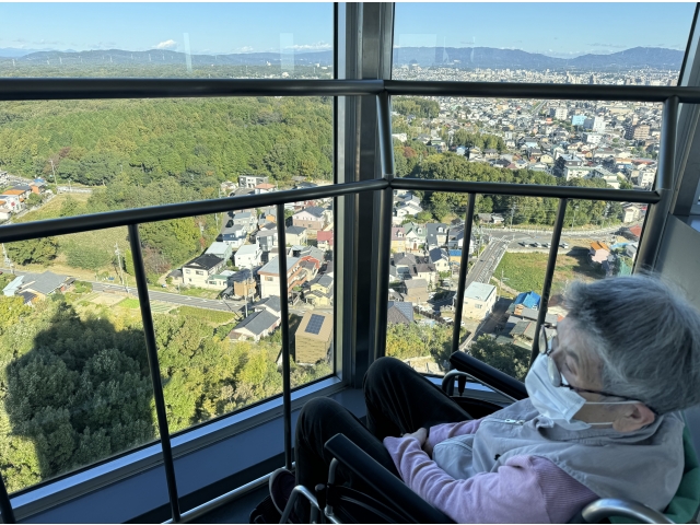 「あの病院へ旦那の見舞いに毎日通っていたの」など、懐かしい思い出話を聞かせてくれました。360度のパノラマに皆さん大満足でした。