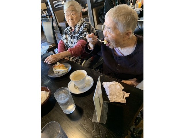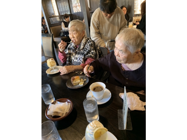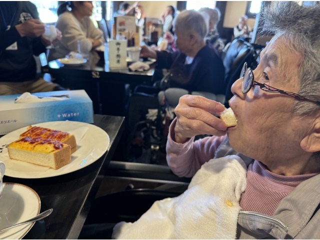 皆さんケーキやアイスクリームなど好きな物を注文しましたが、中にはエッグトーストを食べられる入居者さんも。昼食後に出発しましたが、別腹だったようですね(❁´◡`❁)