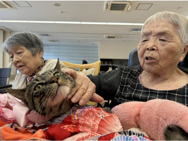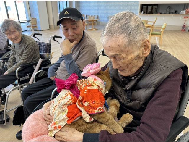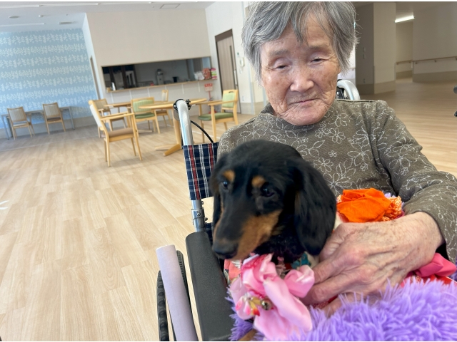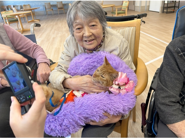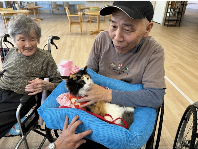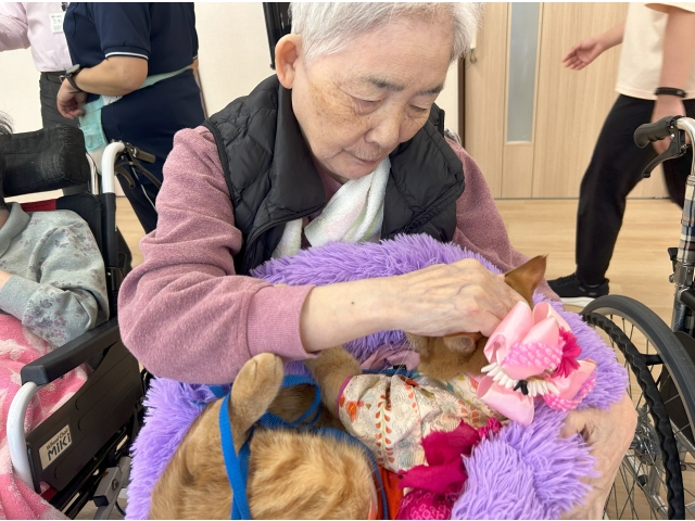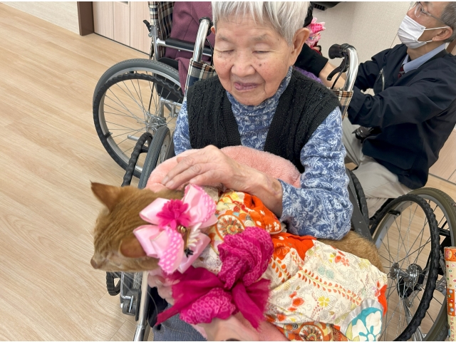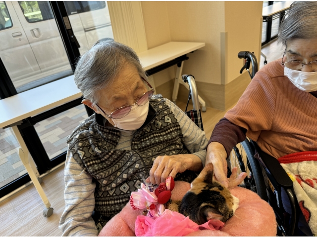 動物たちと触れ合い、思わず赤ちゃん言葉になってしまう入居者さんも…!!