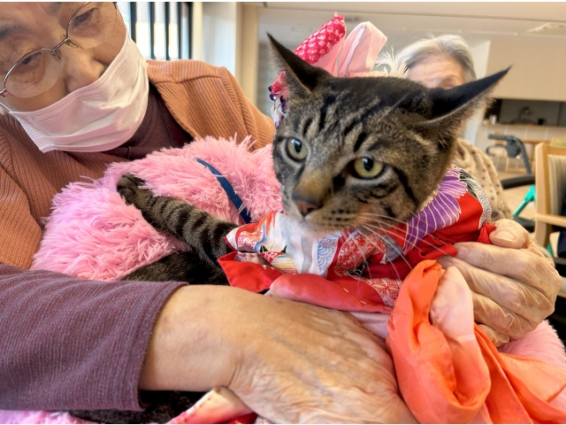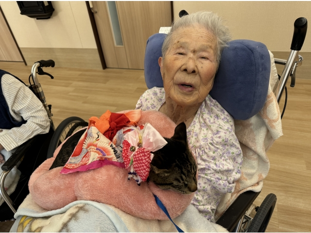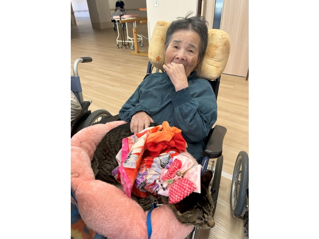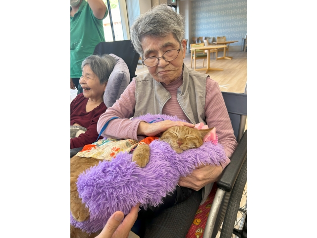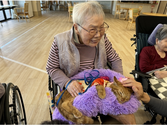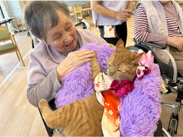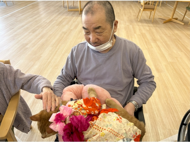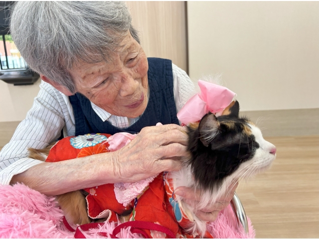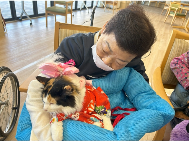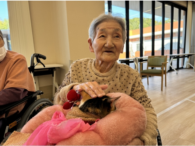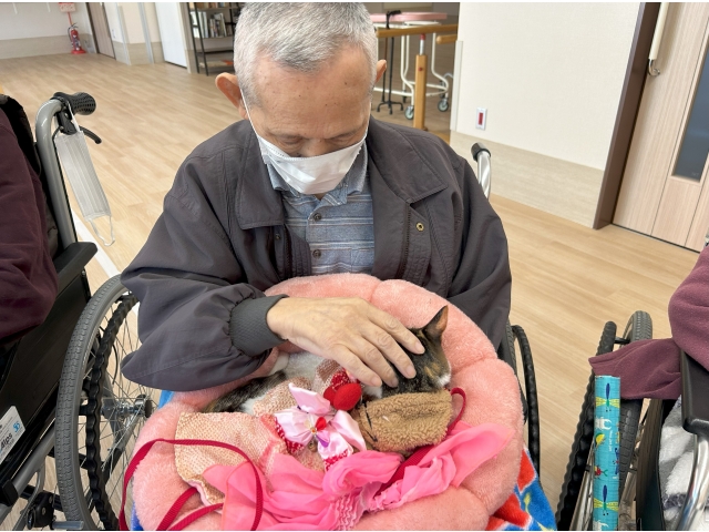 自宅で犬や猫を飼っていた入居者さんは、慣れた手つきで撫でてみえました😻