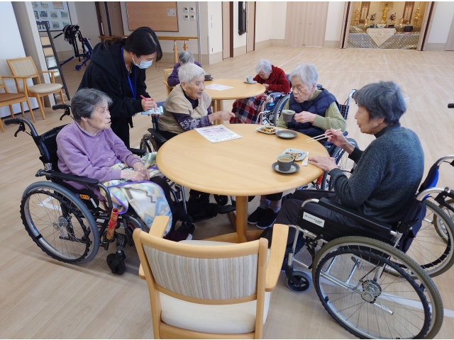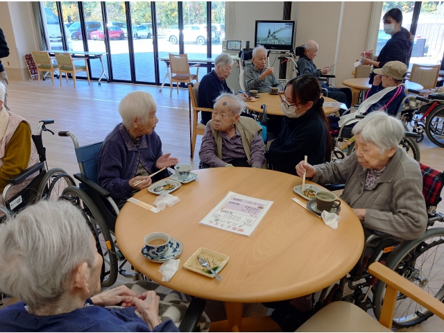 皆さん楽しみに待っていたお好み焼やどら焼、ケーキなどを注文して美味しそうに食べてみえます。