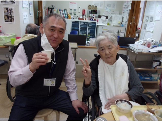 入居者さんから「苑長さん、こっちに来て!」と声をかけられ、何か話があるのかな?と思い近づくと「お酌しますから、乾杯しましょう🍺」とビールを注いでくれました😍