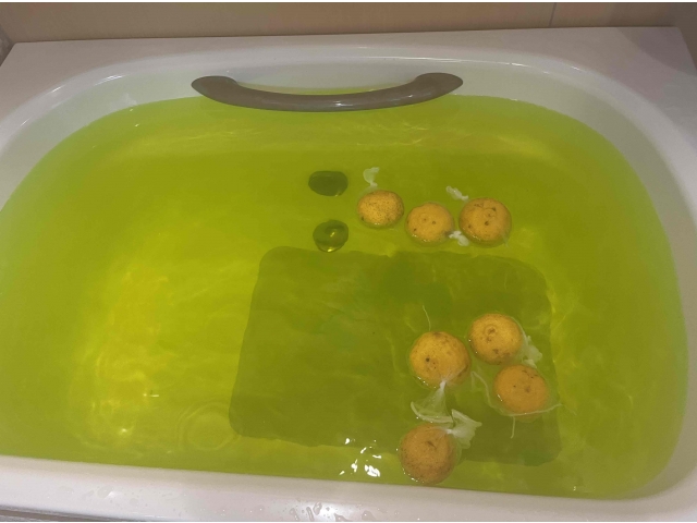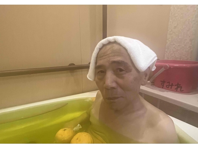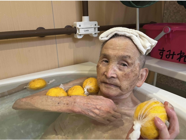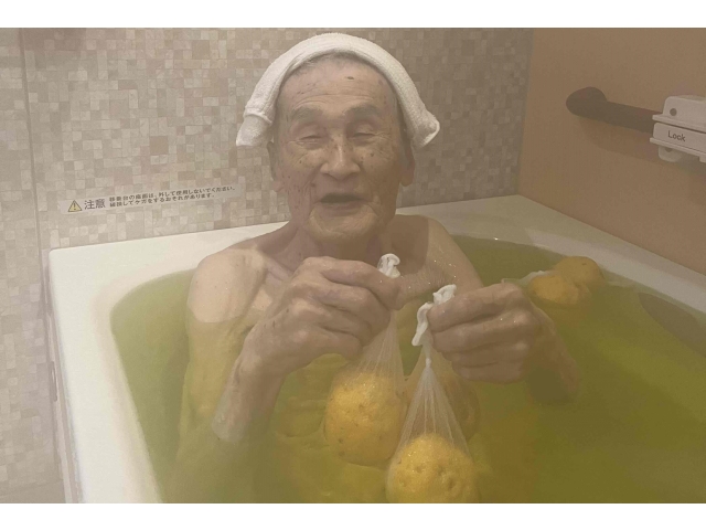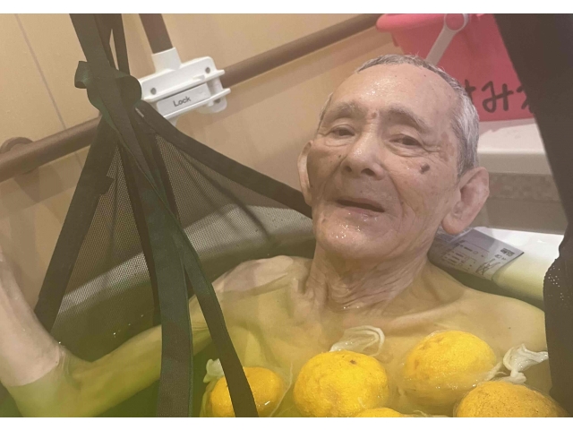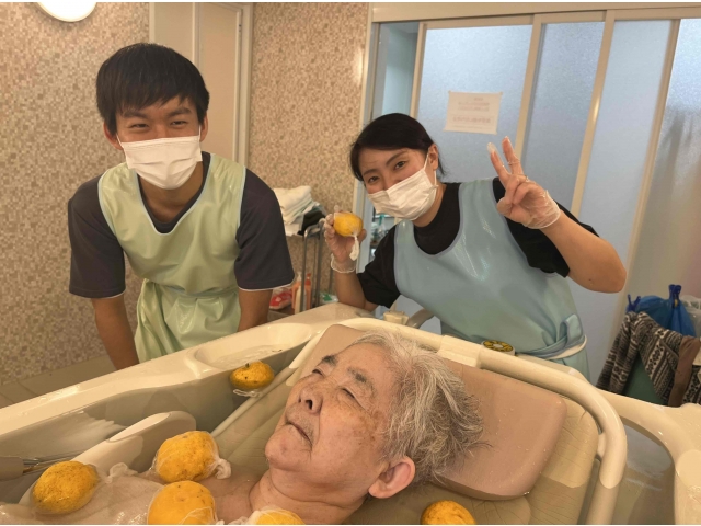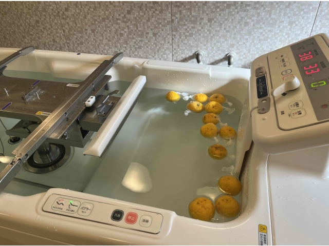 一般的な浴槽以外にも、横になった状態でないと入浴できない方のための寝浴にもゆずを浮かべ、皆さんに楽しんでいただきました♪