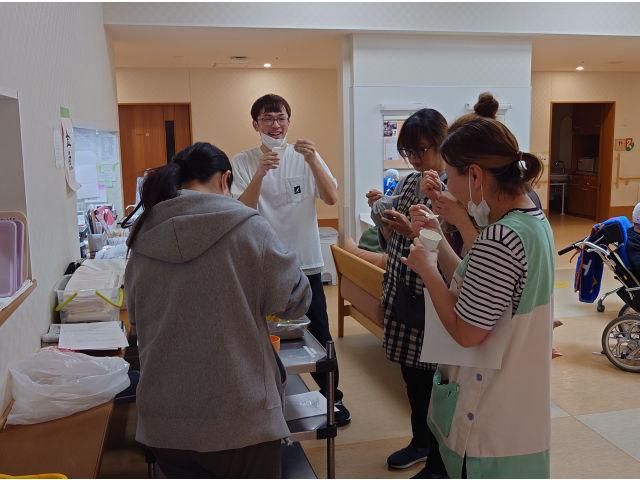 「こんな味がするの!」「思ったより美味しい!」「これは無理!」など、職員の反応も様々でしたが、喉とおりの感覚は実際に食べてみないと解らないものですね(^_-)-☆