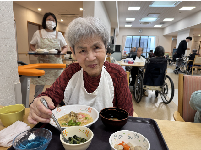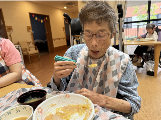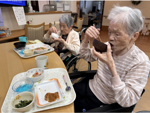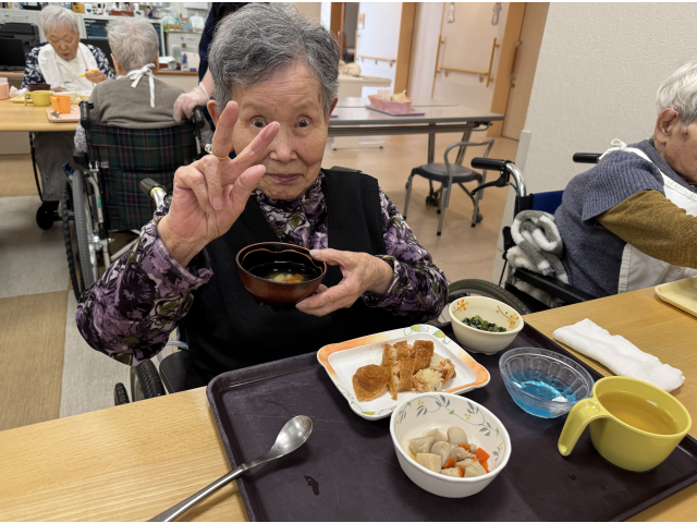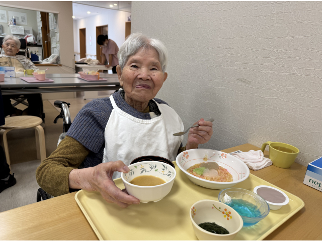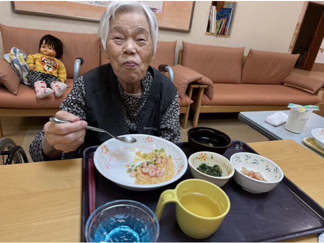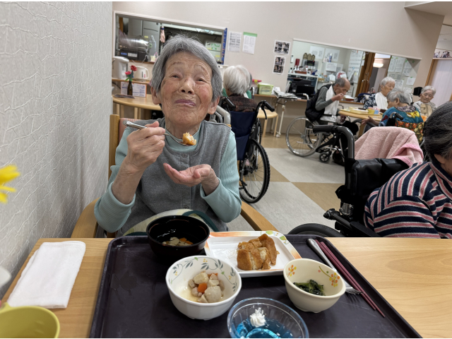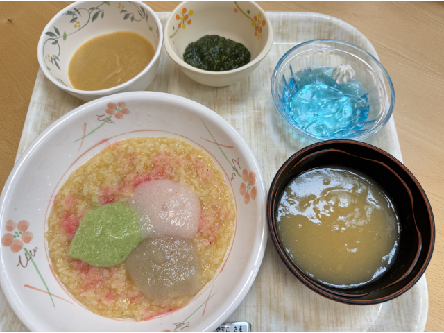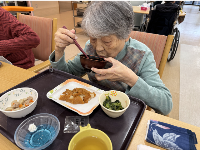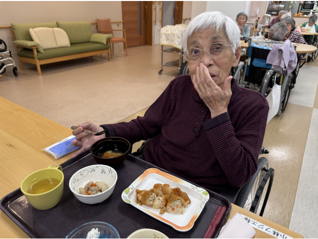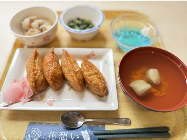 今月のご当地お寿司は、茨城県の「五目いなり寿司」でした✨ いなり寿司は給食であまり出たことがなかったので、皆さんとても喜んでくれました🥰 いなり寿司を食べるのが難しい方には、五目ちらし寿司を提供し、なるべく幅広い方々に楽しんでいただけるよう工夫しています🫡 デザートは鮮やかな水色のネモフィラをイメージしたゼリー🩵今の季節にぴったりのメニューで初夏を感じることができました😆