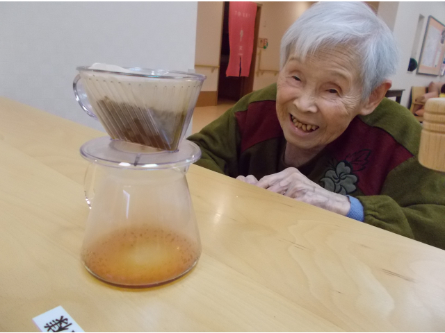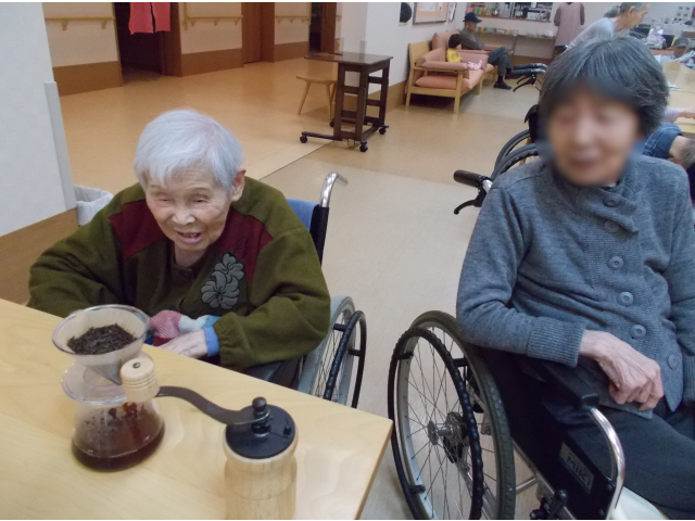 入居者の皆さんはコーヒー好きの方が多く、普段はインスタントのコーヒーを召し上がっておりますが、たまには豆から挽いてコーヒーを楽しみました☕