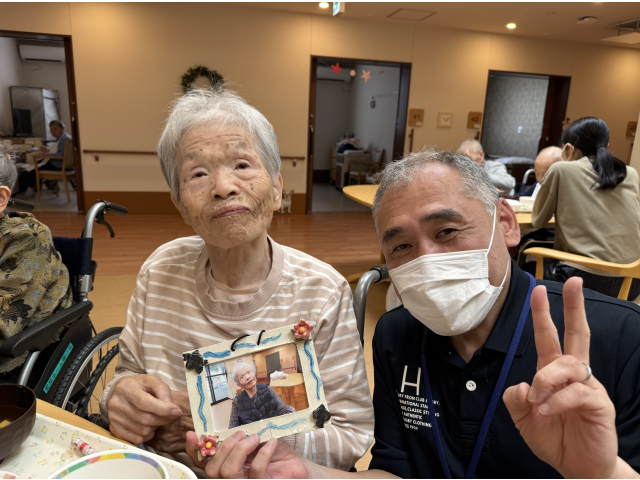 苑長より6月生まれの入居者さんへ写真のプレゼント🎁