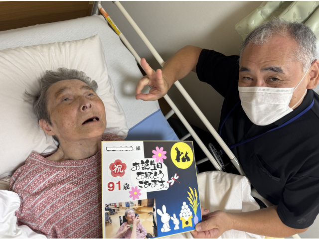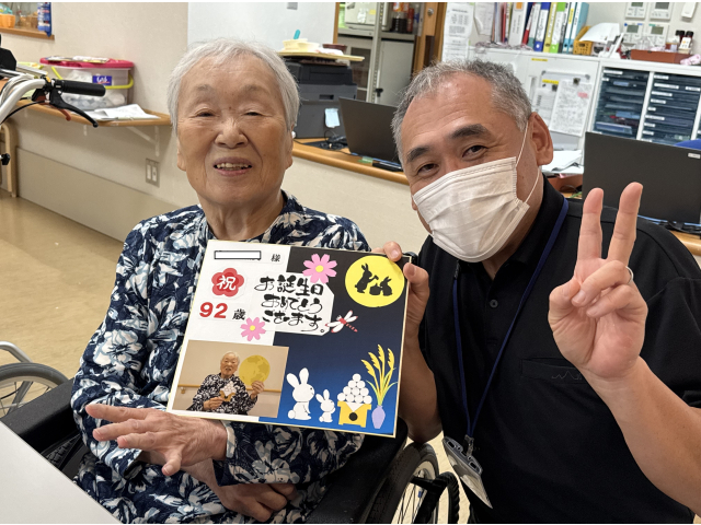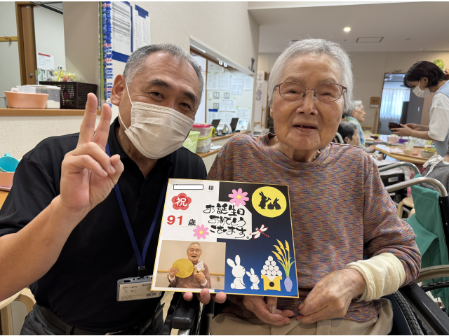 苑長より9月生まれの入居者さんへ恒例の色紙をプレゼント🎁