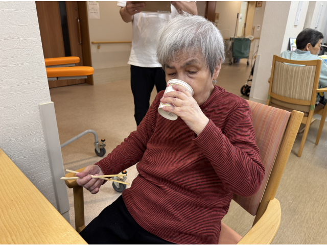 何かあるたびに、「スガキヤ食べたーい。」「昔は40円で食べれたんだ」とよく言われる入居者様には、念願のスガキヤを👏