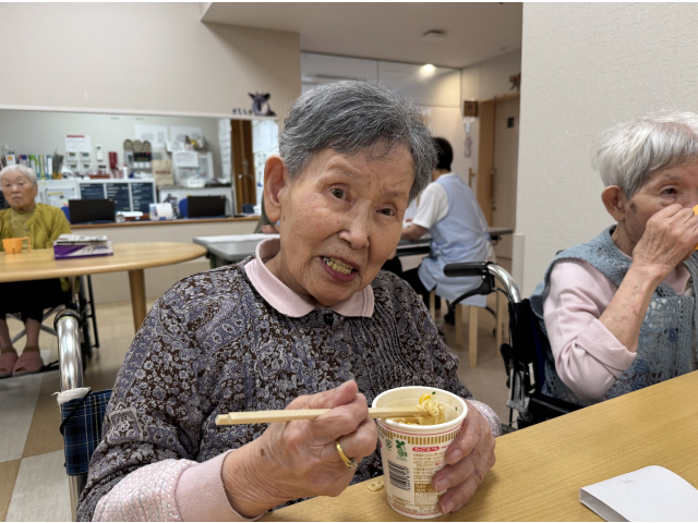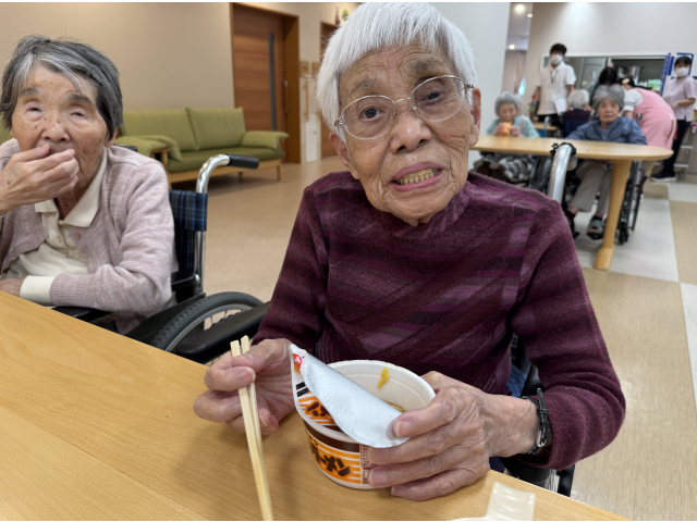 実は入居者の皆様に、すみれフロアで何かしたいことあるか?食べたいものがあるか?のアンケートを実施し、その中で数件、「カップラーメンが食べたい‼」との意見があったため、このパーティーを開催するに至りました😋