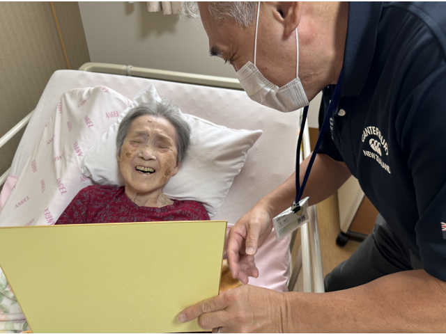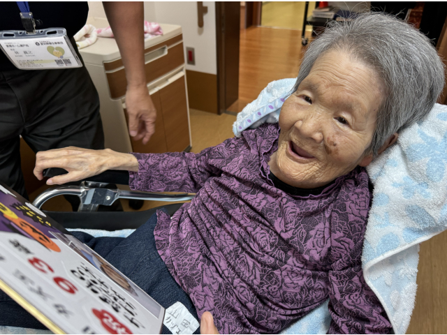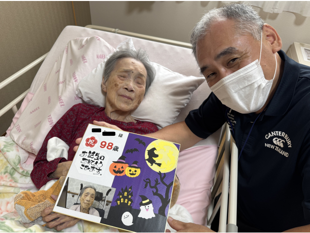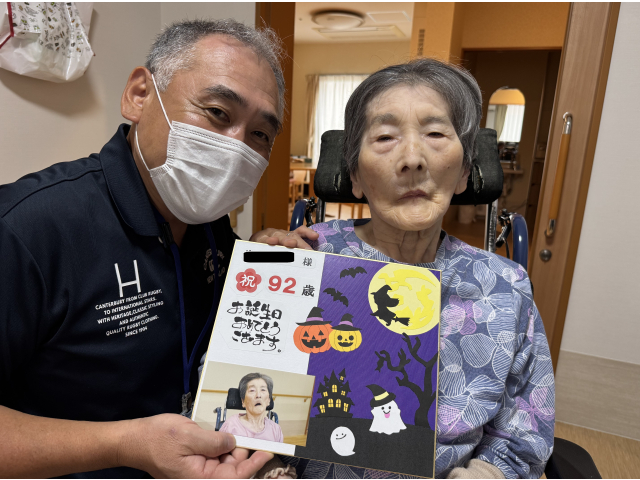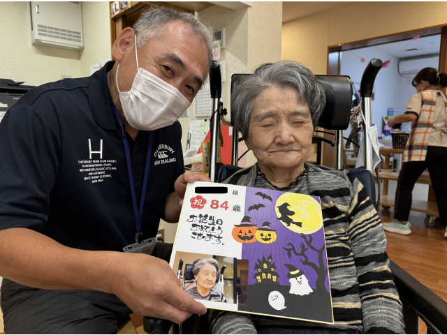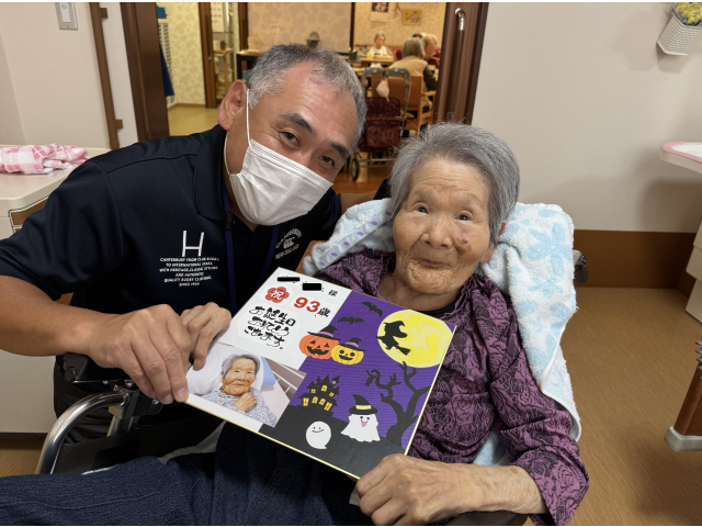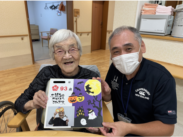 苑長より10月生まれの入居者さんへ恒例の色紙をプレゼント🎁