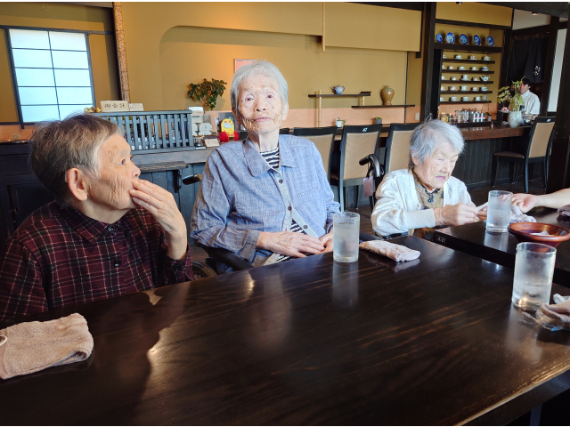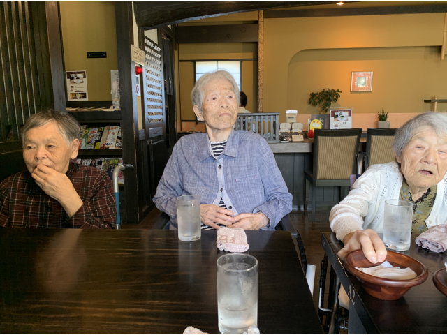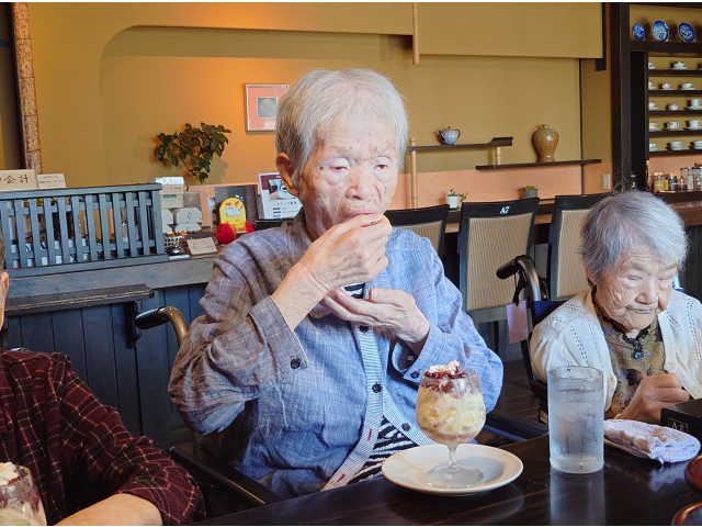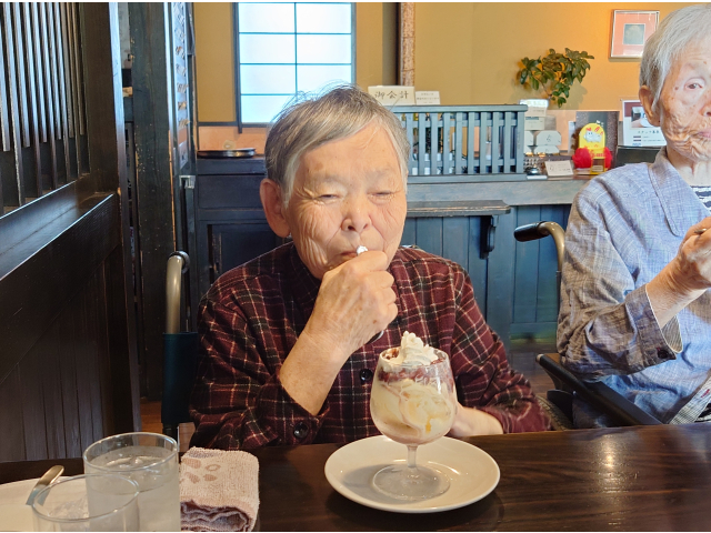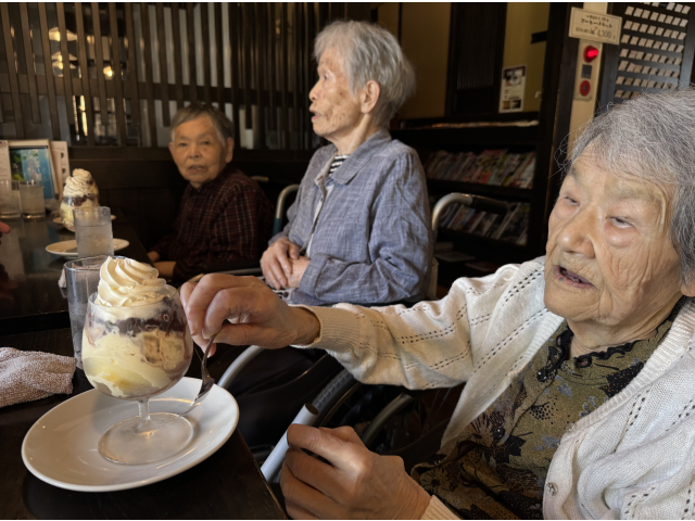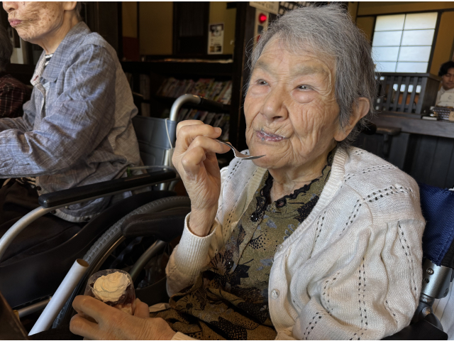 皆さんあずきアイスクリームを注文し、「冷たいけど美味しい!」と笑顔(❁´◡`❁)